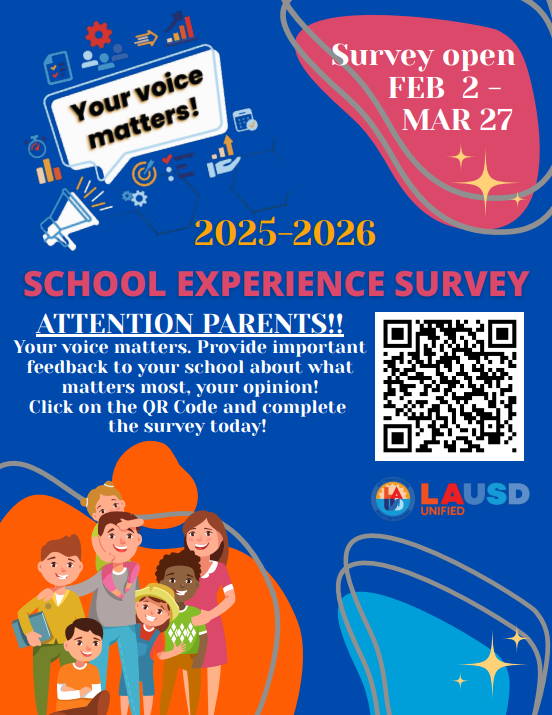 The 2026 School Experience Survey will be open from Monday, February 2nd, to Monday, March 27th, 2026. Please click the link above to participate.